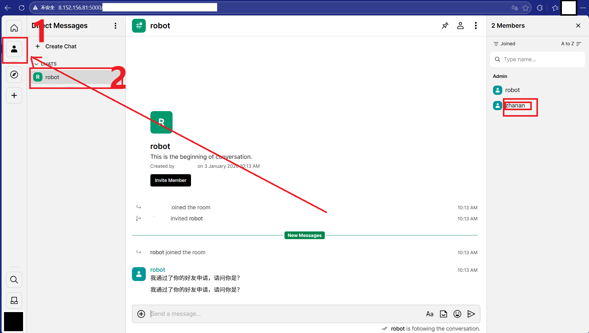 在输入框中输入@robot:8.152.156.81